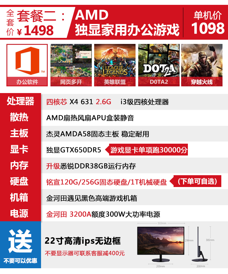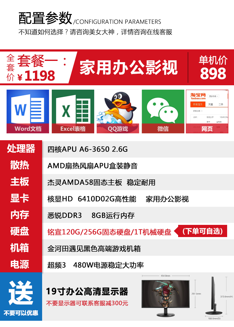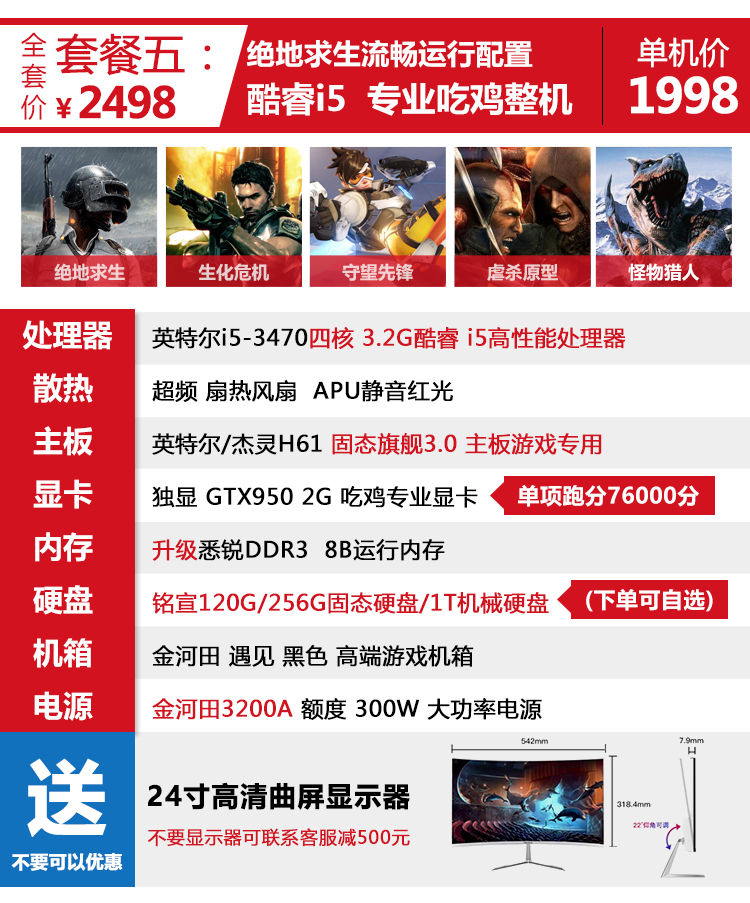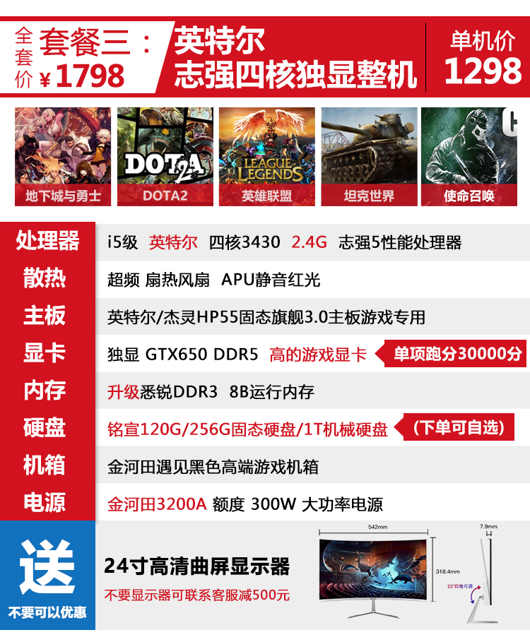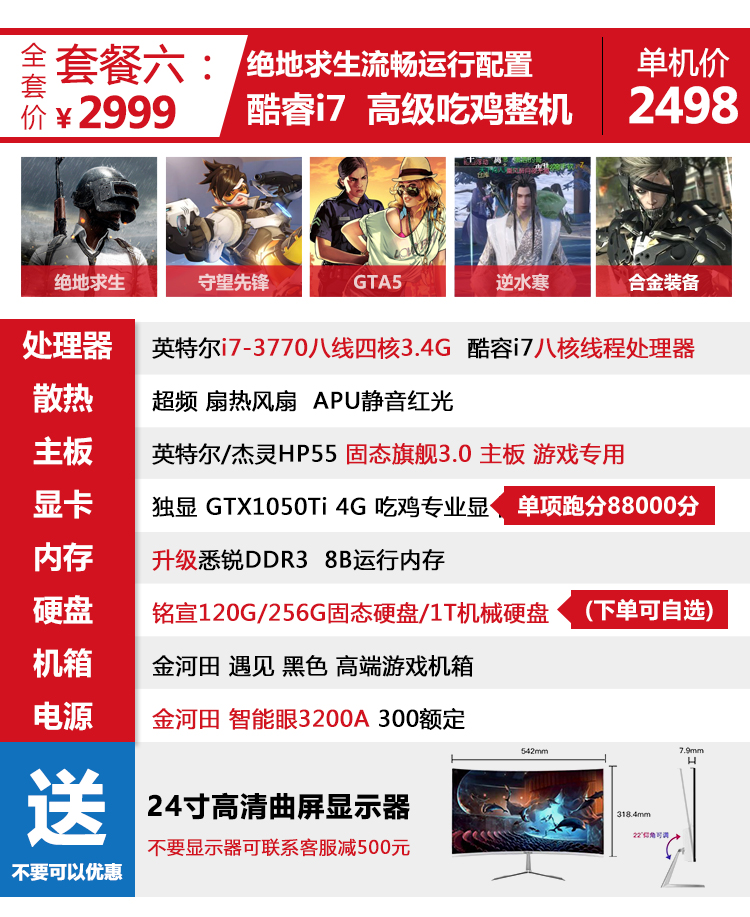 A1-i5臺(tái)式i7高配DIY組裝機(jī)四核獨(dú)顯辦公主機(jī)家用電腦全套